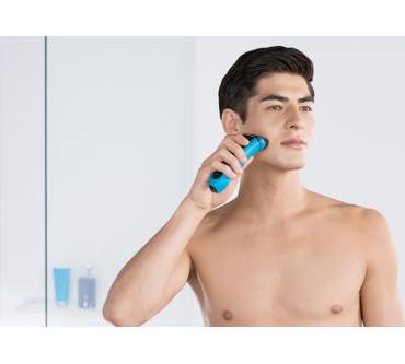 Für gewöhnlich sind bei den Rasierern von Braun Klingenblock und Scherfolie in einem Bauteil zusammen untergebracht, das sich abnehmen und unter fließendem Wasser auswaschen lässt. In der Praxis wirft dies jedoch gewisse Schwierigkeiten auf. Denn die Bartreste lassen sich fast nie oder nur unter großer Mühe und Sorgfalt vollständig auswaschen. Eine wirklich hygienische Reinigung der Schereinheit von Hand ist daher fast unmöglich, eine (übrigens recht sperrige) Reinigungsstation, wie sie für etliche Modelle angeboten wird, fast unumgänglich. Bekanntermaßen muss deren Reinigungsflüssigkeit aber von Zeit zu Zeit ausgetauscht werden, was je nach Beanspruchung des Rasierers ins Geld gehen kann. Der Waterflex dagegen macht es seinem Benutzer viel leichter. Klingenblock und Scherfolie sind bei ihm getrennt. Die dünne Scherfolie lässt sich deshalb nach dem Abnehmen unter fließendem Wasser leicht sauber machen. Gleichzeitig liegt der Klingenblock vollständig frei und wird entweder abgebürstet oder ebenfalls unter den Wasserhahn gehalten. Einer gründlichen manuellen Reinigung steht demnach nichts im Wege. Aufgrund der offenen Bauform können sich Bartstoppeln nirgendwo verstecken – perfekt.