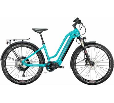 Das Damen E-Bike Brennabor A-96e verfügt über einen auffällig lackierten und sauber verarbeiteten Aluminiumrahmen. Die 27,5-Zoll-Bereifung steht für ein wendiges und agiles Fahrverhalten, wobei die 58 mm breiten Reifen Unebenheiten der Straße gut abdämpfen. Für einen hohen Fahrkomfort ist das Rad mit einer luftgefederten Gabel ausgerüstet. Die Sattelstütze ist ebenfalls gefedert und zudem absenkbar.