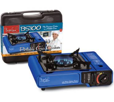 „Der Klassiker im Blechkleid wird ebenfalls im praktischen Transportkoffer geliefert. Verblüffend einfache Bedienung inklusive An- und Abschwenken der Kartusche mittels Hebel. Klar definierter Regler mit integrierter Piezozündung. Recht leise im Betrieb. Der Brenner hat sogar einen kleinen Windschutzring spendiert bekommen.“