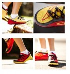In jedem Exemplar des Green Silence steckt demnach ein Stück mehr oder weniger schöner / schrecklicher Geschichte. Außerdem, so Brooks, wird bei der Herstellung besonders sorgsam mit Energie und Mineralöl umgegangen. Sportlich gesehen wiederum ist der rundum aus umweltschonenden Materialien bestehende Schuh – nur zur Illustration: die Bee-Gees-CDs verstärken zum Beispiel die Hinterkappe – als Laufschuh für ambitionierte Läufer ausgelegt – wobei er sich, darauf sei nur am Rande hingewiesen, aufgrund seines Designs auch gut als Freizeit-Sneaker machen würde. Seine asymmetrische Schnürung soll sich außerdem der Fußform „ideal“ anpassen.