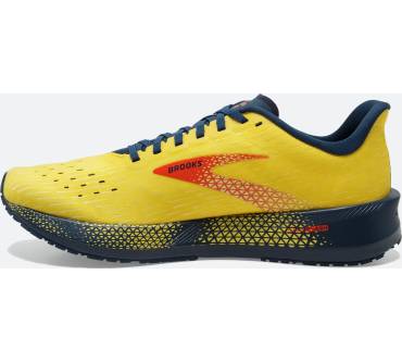 Der Hyperion Tempo von Brooks ist ein Runningschuh für Läuferinnen und Läufer, die bei ihren regelmäßigen Trainingsrunden in hoher Geschwindigkeit unterwegs sind und dabei auch mal längere Etappen zurücklegen. Der Schuh ist federleicht und wiegt in der Damenvariante nur rund 190 Gramm. In den Erfahrungsberichten der Kundinnen und Kunden bekommt besonders das Obermaterial sehr viel Lob. Das Mesh-Gitter schmiegt sich angenehm an den Fuß und sorgt für gute Luftzirkulation. So bleibt auch bei schweißtreibenden Einheiten ein trockenes Klima im Schuh erhalten. Die meisten Rezensentinnen und Rezensenten empfanden die Dämpfung als gleichzeitig energierückführend und komfortabel. So sollten auch längere Strecken schmerzfrei zu überstehen sein. Auch der Vorgänger kommt gut bei den Testern an.