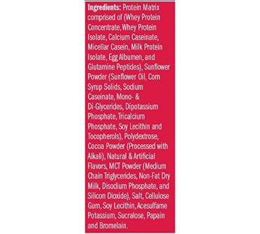 Streng genommen setzt sich das Protein aus nur drei statt der vom Hersteller angepriesenen sechs Proteinquellen zusammen: Molkenprotein, Casein und Eiprotein. Der „Trick“ besteht darin, dass die Proteinarten zum Teil in unterschiedlichen Qualitäten vorliegen, die wiederum als eigenständige Komponenten deklariert werden – durchaus eine gängige, herstellerübergreifende Praxis am Markt. So besteht das Molkenprotein zum einen aus günstigem Molkenprotein-Konzentrat und zum anderen aus einem reineren Molkenprotein-Isolat. Ähnlich verhält es sich beim Casein, das die Rolle der langfristigen Proteinversorgung übernimmt und in drei verschiedenen „Reinheitsgraden“ beigemischt wird: Mizellares Casein – die Vorstufe von Käse – und Calciumcaseinat, die konzentriertere und reinere Form davon. Casein steckt im Wesentlichen auch im zugesetzten Milchprotein-Isolat. Letzte Komponente im Proteinverbund ist Eiprotein, das aus Eiklar gewonnen wird und als mittelfristig abbaubares Protein die Lücke zwischen dem schnell verfügbaren Molkenprotein und langsam abbaubaren Casein schließt. Die prozentuale Zusammensetzung der Proteinbestandteile ist nicht bekannt. Es ist jedoch davon auszugehen, dass die teureren Isolate in ähnlich geringer Konzentration enthalten sind wie in vielen Konkurrenzprodukten.Dennoch handelt es sich keinesfalls um ein minderwertiges Protein, zumal das Pulver auch nicht mit pflanzlichen Proteinen „gestreckt“ wird. Die Gesamtproteinmenge macht allerdings nur knapp die Hälfte des Pulvers aus. Das ist viel weniger als bei der Mehrheit der Mitstreiter am Markt. Eine Besonderheit ist die Beigabe der Aminosäure Glutamin in sogenannter Peptidform. Erfahrene Kraftsportler sehen in ihr eine stabilere und schneller resorbierbare Quelle als in freiem Glutamin, wie es in vergleichbaren Präparaten häufig vorzufinden ist.