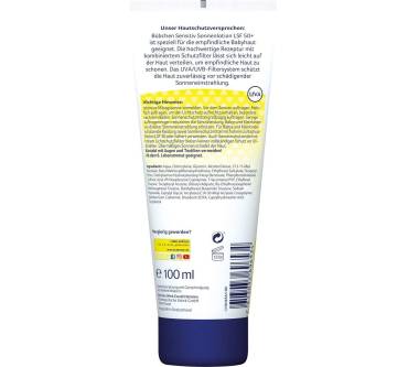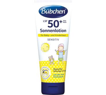 Die Bübchen Sonnenlotion für Baby- und Kinderhaut Sensitiv 50+ bietet einen hohen Lichtschutzfaktor von 50+, der empfindliche Kinderhaut zuverlässig vor schädlicher UV-Strahlung schützt. Sie ist wasserfest und zieht schnell ein, ohne einen klebrigen Film zu hinterlassen. Die Lotion ist vegan und enthält weder Parfüm noch Konservierungsstoffe, was sie besonders hautverträglich macht. Sie ist für Kinder ab dem 6. Lebensmonat geeignet und dermatologisch getestet. Der Preis liegt bei etwa 6,95 € für 100 ml.