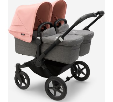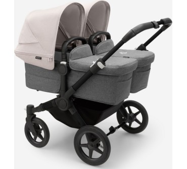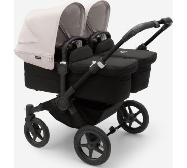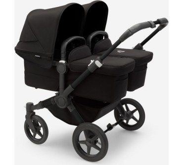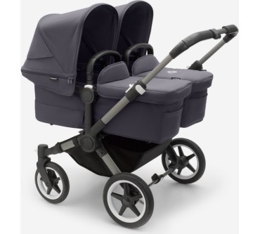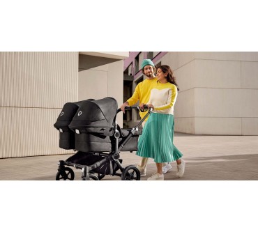 Der Zwillings-Kinderwagen von Bugaboo bietet ihrem Nachwuchs eine durchgängige Mitfahrgelegenheit bis zum Alter von 36 Monaten. Die beiden Kids sitzen nebeneinander, wobei der Blick in Fahrtrichtung, zu den Eltern oder zueinander gerichtet sein kann. Die Liegewanne ist mit einer Belüftung versehen, die Sie bei schlechtem Wetter verschließen können. Sind Sie mit nur einem Kind unterwegs, lässt sich die breite des Wagens mit wenigen Handgriffen reduzieren. Im Set enthalten sind zwei Sonnendächer, eine seitliche Gepäcktasche sowie eine Untergestellablage.