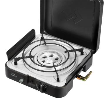 Effizienter Campinggrill. Ist dank Zündsicherung und effizienter Wärmeerzeugung sehr sicher. Mit seinem vielseitigen Zubehör ist er ideal für Camper, hat aber Einschränkungen in der Größe. Ein integrierter Zünder hätte mehr Komfort geboten.