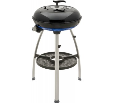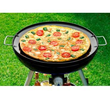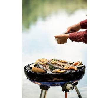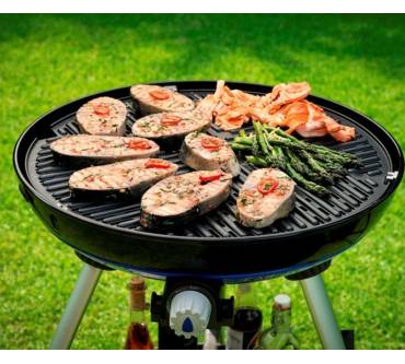 Der Gasgrill von Cadac ist in erster Linie für das Grillen unterwegs gedacht. Der runde Grill ist in einer Transporttasche untergebracht, Sie können ihn dementsprechend einfach transportieren. Nachdem die drei robust wirkenden Alu-Beine montiert sind und die Gasflasche angeschlossen ist, stehen Ihnen mehrere Garmethoden zur Verfügung. Die Basis-Ausführung bietet Ihnen die Möglichkeit zum Grillen mit direkter oder indirekter Hitze. Oder Sie nutzen die im Lieferumfang enthaltene, Wok-ähnliche Grillpfanne zum Braten, Schmoren oder Backen. Entscheiden Sie sich für das Garen mit geschlossenem Deckel, gibt Ihnen ein integriertes Thermometer Auskunft über die Temperaturverhältnisse unter der Haube.
