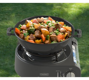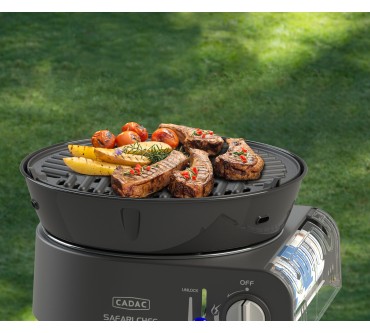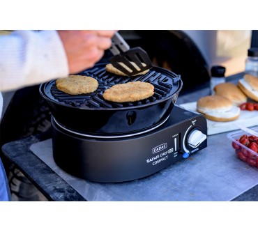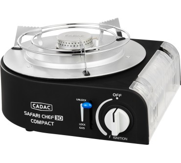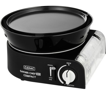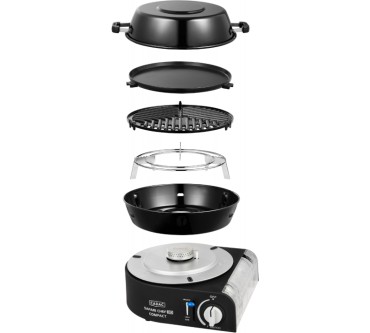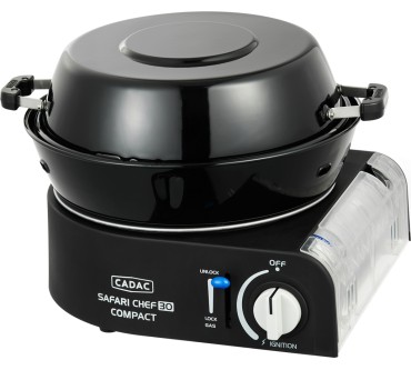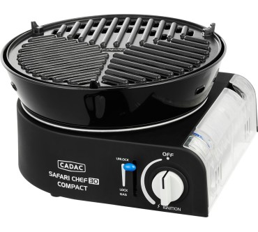 Der Safari Chef 30 Compact von Cadac kommt namenskonform mit kleinen Maßen daher und eignet sich als Allroundkochstelle für Ihren Campingurlaub oder zur Mitnahme auf Motorradtour und ähnliche Aktivitäten. Eine stabile Transporttasche ist dabei. Die Konstruktion ist gut durchdacht: Sie können beispielsweise den Deckel als Pfanne nutzen oder auf dem Topfständer Suppen zubereiten. Die Tropfschale ist auch als Windschutz einsetzbar, aber laut Test nicht leicht zu reinigen. Ein glatter und ein geriffelter Grillaufsatz komplettieren den vielseitigen Mini. Das Modell wird mit gängigen Gaskartuschen betrieben und ist mit weiterem Zubehör wie Pizzastein oder Paella-Pfanne erweiterbar. Derzeit müssen Sie für den Alleskönner rund 150 Euro veranschlagen, was im Hinblick auf die Ausstattung aber gerechtfertigt erscheint.