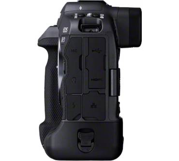 Mit der EOS R3 stellt Canon eine weitere spiegellose Systemkamera im Profi-Segment vor. Das Magnesium-Gehäuse ist nicht nur mit einem zweiten Handgriff für Hochkant-Aufnahmen ausgestattet, sondern selbstverständlich auch staub- und spritzwassergeschützt. Der zusätzliche Handgriff macht das Gehäuse zwar größer als das herkömmlicher Systemkameras, dafür beherbergt er aber auch einen größeren Akku, der gemessen nach CIPA-Standard für immerhin 860 Aufnahmen im LCD-Betrieb sorgt. Im Vergleich zu Canons Spiegelreflex-Sport-Profi EOS 1D X Mark III fällt die R3 immer noch deutlich kompakter und mit 1.015 Gramm fast ein Drittel leichter aus.