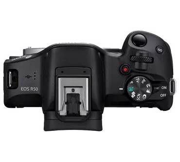 Mit der EOS R50 bringt Canon einen Nachfolger der M50 auf den Markt, mit dem zukunftstauglichen R-Bajonett. Optisch ähnelt die Kamera dabei dem Vorgänger und ist mit 375 Gramm sehr leicht und kompakt. Die Größe ist vor allem für Nutzer:innen mit kleinen Händen ideal, könnte jedoch für andere unhandlich sein. Die R50 verfügt über einen integrierten Blitz, über dem sich zusätzlich eine neue Art Blitzschuh für externe Mikrofone und Blitzgeräte befindet. Dabei handelt es sich jedoch nicht über einen Mittenkontakt, wie oft üblich. Geräte mit einem solchen müssen hier also mit einem zusätzlichen Adapter angebracht werden.