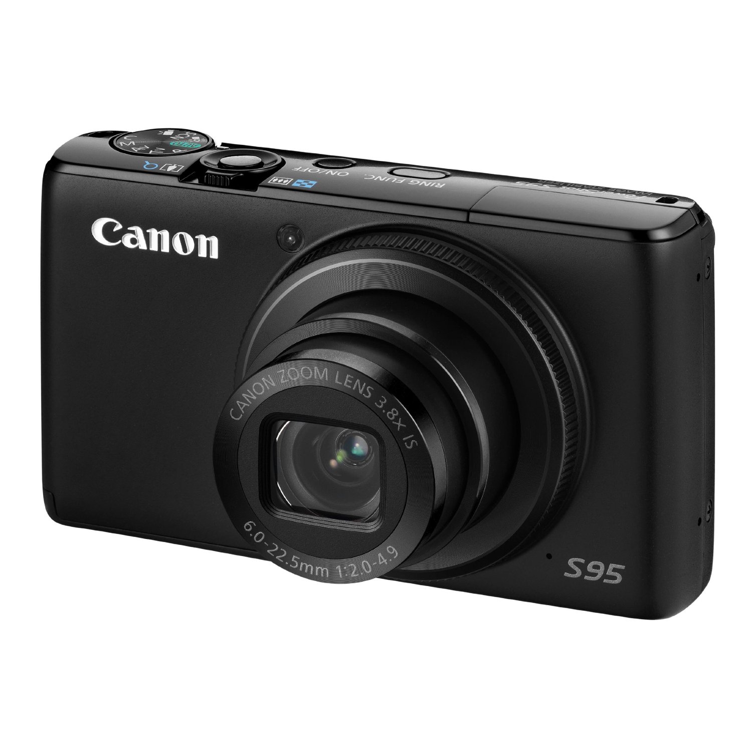 Dieses Modell verfügt über einen CCD-Sensor, der mit 1/1,7 Zoll größer ist, als der vieler vergleichbarer Kompaktkameras. Bezüglich der Bildqualität profitiert diese Kamera davon, dass Canon den Sensor mit relativ geringen 10 Megapixeln ausgestattet hat. In Tests wurde die Bildqualität der S 95 fast durchweg als sehr gut bewertet und auch Nutzerrezensionen sprachen fast einhellig gut davon. Zudem verfügt diese Kamera über einen 3,8-fachen optischen Zoom mit einem Brennweitenbereich von 28 bis 105 Millimetern. Das Objektiv verspricht dabei mit Werten von 1:2,0–4,9 besonders lichtstark zu sein, was wiederum der Bildqualität zu Gute kommt. Auch die Arbeit des Hybrid-Bildstabilisators konnte die Tester überzeugen, der auch bei wenig Licht gute und scharfe Aufnahmen machen soll. Der LC-Bildschirm misst in der Diagonalen 7,5 Zentimeter (3 Zoll) und löst mit 460.000 Bildpunkten