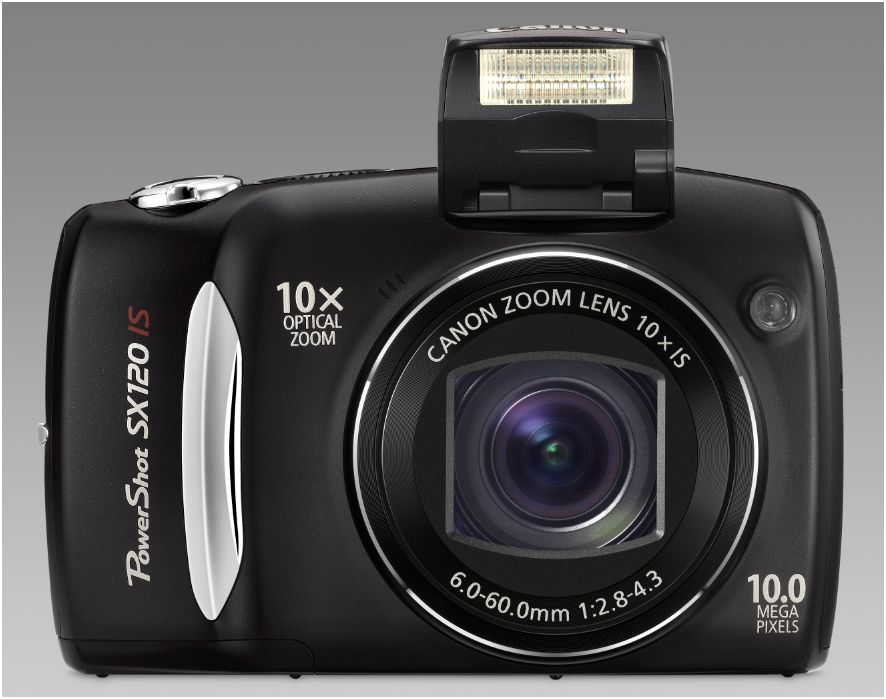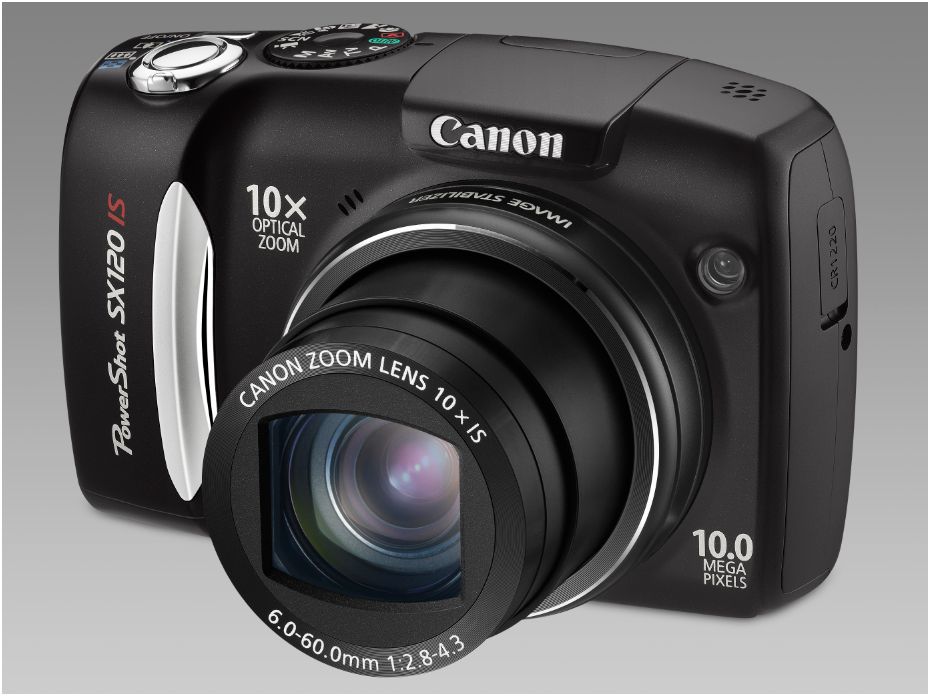 Die Kompaktkamera Canon PowerShot SX120 IS nimmt Fotos in einer Auflösung von 10 Megapixeln auf und besitzt eine besonders leistungestarke Optik, die um das 10fache zoomen kann. Der Brennweitenumfang liegt zwischen 36 und 360 Millimetern. Ein optischer Bildstabilisator soll dafür sorgen, dass auch in den hohen Brennweiten Aufnahmen aus der Hand nicht verwackeln. Das Ergebnis kann auf einem großen und hellen 3-Zoll-Monitor betrachtet werden, der das Bild in 230.000 Pixel auflöst.