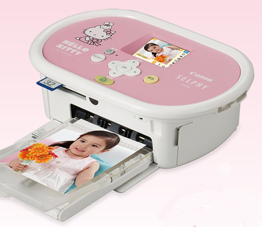 Canon hat die Originalität seines Fotodruckers Selphy CP770 noch einmal drastisch gesteigert. Verblüffte das bisherige Modell schon mit seinem wahrlich originellen Eimerdesign, so ist das Gerät nun auch im Hello-Kitty-Design erhältlich. Und war bisher auch schon der Druck mit dem Selphy CP 770 kinderleicht, so wird er nun durch das neue Design noch kinderfreundlicher. Der Drucker wird einfach auf Knopfdruck gestartet, vorher können noch am 2,5-Zoll-Display einige kleineren Bildretuschen wie auch die Rote-Augen-Korrektur vorgenommen werden. Außerdem fokussiert er dank Gesichtserkennung immer die wichtigste Person auf dem Bild. Praktisch: Der PC-unabhängige Druck via PictBridge oder von einer der gängigen Speicherkarten – Geburtstagsparty- und Kinderzimmer-friendly also.
