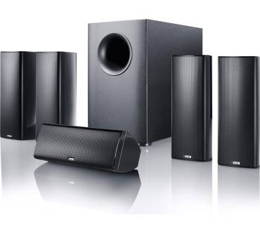 Das Canton Movie 365 ist ein 5.1-Heimkinosystem, das aus zwei Front- und zwei Surround-Lautsprechern, einem Center-Lautsprecher und einem aktiven Subwoofer besteht. Die Lautsprecher sind in einem geschlossenen Gehäuse untergebracht, während der Subwoofer ein Bandpass-System nutzt. Mit einem Schalldruckpegel von 86 dB und einer Impedanz von 4 bis 8 Ohm sind die Komponenten aufeinander abgestimmt, um ein ausgewogenes Klangerlebnis zu bieten. Die Front- und Surround-Lautsprecher verfügen über zwei 80-mm-Aluminium-Tieftöner und einen 15-mm-Aluminium-Hochtöner, während der Center-Lautsprecher mit zwei 80-mm-Tieftönern und einem 15-mm-Hochtöner ausgestattet ist. Der Subwoofer besitzt einen 200-mm-Aluminium-Tieftöner. Die Frequenzbereiche der einzelnen Lautsprecher reichen von 120 Hz bis 25.000 Hz, wobei der Subwoofer einen Bereich von 33 Hz bis 140 Hz abdeckt. Die Übergangsfrequenzen liegen bei 5.000 Hz für die Front-, Center- und Surround-Lautsprecher sowie 80 bis 140 Hz für den Subwoofer. Für die Wandmontage sind passende Halterungen im Lieferumfang enthalten.