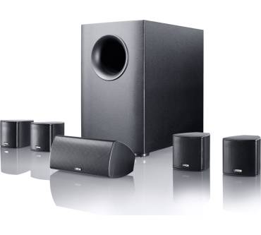 Dem aktiven Subwoofer, der im Gegensatz zu den restlichen Boxen nicht aus Kunststoff, sondern aus MDF besteht und in dem sich ein mit 120 Watt belastetes 200 Millimeter-Alu-Chassis verdingt, bescheinigt das Unternehmen eine untere Grenzfrequenz von 33 Hertz, was auf ein sattes Bassfundament hoffen lässt. Es handelt sich um einen Subwoofer in Bandpass-Bauweise, der die Vorteile geschlossener Gehäuse (präziser Bass) mit denen von Bassreflex-Gehäusen (höherer Wirkungsgrad) kombinieren soll. Die Rückseite des 24 Zentimeter breiten, 41 Zentimeter hohen, 42 Zentimeter tiefen und knapp zehn Kilogramm schweren Tieftonspezialisten ist mit zwei Cinch-Eingängen, einem LFE-Eingang und einem High-Level-Eingang für Verstärker und AV-Receiver ohne Subwoofer-Ausgang besetzt, außerdem gibt es zwei Regler für Lautstärke und Phase.Das Testfazit von „Area DVD“ fällt ziemlich positiv aus, hier ist die Rede von einer preisbezogen „nicht zu verachtenden Leistung“ mit ordentlicher Räumlichkeit und „durchaus guter“ Detailtreue. Abzüge gibt es für die etwas spitze Hochtonwiedergabe bei satteren Pegeln.
