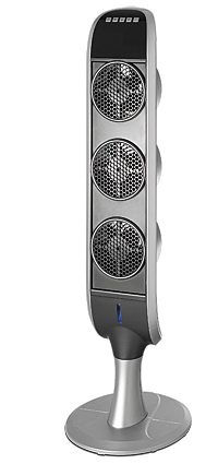 Der Airos Slim wartet, wie der Hersteller Casafan beton, mit einem für einen Säulenventilator neuartigem Konzept aus. Die drei Laufräder können nämlich einzeln eingestellt werden, auf Wunsch erzeugt der Ventilator daher die kühlende Brise entweder nur unten, in der Mitte oder oben, an ganz heißen Tagen lassen sich auch alle drei gleichzeitig nutzen. Diese Einstellmöglichkeit ist tatsächlich ein Pluspunkt gegenüber der Konkurrenz, denn mit Ausnahme der Oszillationsfunktion lassen sich Säulenventilatoren nur selten auf spezielle Belüftungswünsche so flexibel einstellen