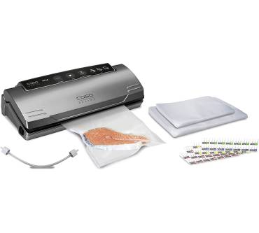 Das Vakuumiergerät VC 10 Plus Edition von Caso bietet zahlreiche Annehmlichkeiten für sicheres und schnelles Vakuumieren. In einem Arbeitsgang werden die Beutel zusätzlich versiegelt. Die Stärke regeln Sie individuell über die Start-und-Stopp-Taste. Maximal schafft das Gerät einen „Luftentzug“ von neun Litern pro Minute. Für den Hausgebrauch ist das erfreulich stark. Das Gerät eignet sich für Beutel mit einer Länge von bis zu 30 Zentimetern. So machen Sie auch große Mengen Lebensmittel haltbar oder bereiten sie für das Sous-vide-Garen vor. Im Lieferumfang inbegriffen ist ein Schlauch, sodass Sie die Vakuumierkraft auch für entsprechende Behälter nutzen können. Aktuell kostet der VC 10 Plus um die 70 Euro. Der Preis passt zur guten Leistung.