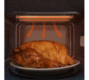 Die freistehende Mikrowelle besticht optisch durch ihre verspiegelte „MirrorDood“ Front. Das edle Design mit Metalldetails passt in jede Kücheneinrichtung. Sie bietet 20 Liter Fassungsvermögen und einen Drehteller zum gleichmäßigen Erwärmen Ihrer Speisen. Die Bedienung ist Nutzern zufolge intuitiv und einfach, sie erfolgt über eine manuelle Drehsteuerung. Die 700 Watt Mikrowellenleistung können Sie über sechs Stufen individuell an Ihre Lebensmittel anpassen. Zudem gibt es einen praktischen Auftaumodus für Tiefgefrorenes. Den Timer mit Signalton können Sie auf bis zu 30 Minuten einstellen. Eine Grillfunktion ist bei diesem Modell nicht vorhanden. Die integrierte „3DWave“-Technologie sorgt für ein hocheffizientes Wellensystem, dass alle Lebensmittel vollständig umhüllt. Rezensenten bestätigen gleichmäßige Ergebnisse, kritisieren jedoch den unzureichend beleuchteten Garraum. Die schmutzabweisende „Ready2Clean“-Beschichtung im Garraum lässt sich besonders leicht reinigen.