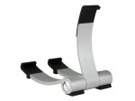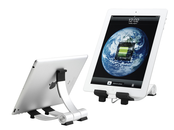 In Gebrauch genommen wiederum wird er mit einem einzigen Handgriff. Der Ständer besteht nämlich aus drei „Fingern“, von denen sich der mittlere aufrichten lässt und damit die Stützfunktion für den Tablet-PC übernimmt. Überaus praktisch: Der Neigungswinkel kann dabei nach Belieben gewählt werden. Der Tablet-PC kann ferner sowohl im Hochformat als auch im Querformat eingelegt werden, eine Gummierung wiederum verhindert, dass er unter heraus rutscht. Weitere Gummiapplikationen an der Unterseite wiederum machen den Ständer rutschfest, selbst auf einem sehr glatten Untergrund. Außerdem kommt hier dem Gerät sein Gewicht zugute: In den ersten Praxistests präsentierte sich der Choiix als erfreulich standsicher, die Gefahr, dass er mitsamt seiner wertvollen Fracht bei Stößen oder Schubsern gleich umfällt, scheint sehr gering zu sein.