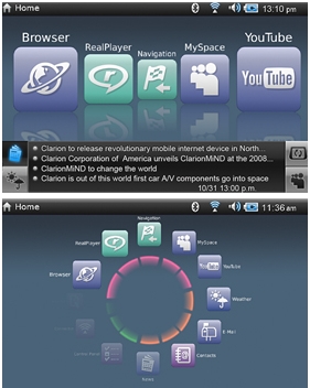 In Kürze wird Clarion auf dem deutschen Markt ein Navigationssystem mit dem Namen MiND in den Handel bringen. Kernelement des Navis ist seine Internetfähigkeit. Genau genommen handelt es sich bei dem Gerät um ein Mobile Internet Device, also einen mobilen, internetfähigen Multimedia-Player mit integrierter Navigation: MID plus N = MiND. Der Internetzugang des MiND wird über WLAN (802.11 b/g) oder via Bluetooth (2.0+EDR) mit einem entsprechenden bluetoothfähigen Handy realisiert. An Bord sind bereits ein flash-fähiger Firefox-Browser sowie diverse Anwendungen installiert, die einen direkten Zugang zu Goggle Maps, YouTube, MySpace und ähnliche populäre Seiten erlauben. Abgerufen werden auch Wetterdaten, News oder RSS-Feeds. Der RealPlayer unterstützt diverse Musik-, Video und Bildformate.