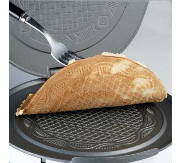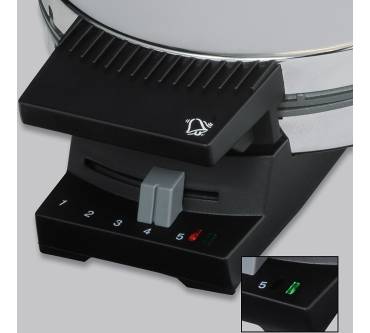 Da Hörnchen sehr dünn zubereitet werden, ist die Dauer der Zubereitung entscheidend – schließlich soll der Teig nicht verbrennen. Ein Exemplar braucht – je nach gewünschtem Bräunungsgrad – etwa 45 Sekunden, bis es fertig gebacken ist. Um nicht ständig den Deckel anheben zu müssen, gibt es beim Cloer eine grüne Kontrollleuchte, die signalisiert: Jetzt kann der Inhalt entnommen werden. Wer Schwierigkeiten bei der Rot-Grün-Unterscheidung hat, kann sich auf den ebenfalls verbauten Piepton verlassen. An diesem scheiden sich die Geister: Während er manchem Käufer zu leise erscheint, kritisieren andere seine Penetranz. Abschalten ist leider keine Option. Das hat der Hersteller nicht vorgesehen.
