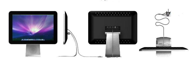 Technisch bietet der CinemaView 24 allerdings auch nur ein TN-Panel – Apple verbaut dagegen ein hochwertiges H-IPS-Panel – dessen Blickwinkel deswegen auch nur bei 170 Grad horizontal und 160 Grad vertikal liegt. Den Kontrast wiederum gibt der Hersteller mit 1.000:1 an, die Helligkeit mit 350 cd/m² – Apple-Niveau. Verzichten muss man dafür wiederum auf die LED-Hintergrundbeleuchtung des Cinema Display, dafür bekommt man eine Full-HD-Auflösung von 1.920 mal 1.080 Pixeln. Wie das Original, so besteht das Gehäuse und der Fuß des Klons aus Aluminium, und auch das Echtglas wurde nicht vergessen – genau so wenig wie drei USB-Schnittstellen, die auf der Rückseite angebracht sind.