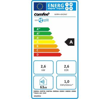 Comfee MPPH-09CRN7 Monoblock Klimagerät weiß / AProdukt-Highlights:9.000 BTU/h Leistunggeeignet für Räume bis 32 m²Kühlmittel R290inkl. FernbedienungLED DisplayTemperaturbereich 17°C bis 35°CEntfeuchtigkeitsleistung 50,9 L/24hKühlen, Entfeuchten, VentilierenTimer / VerbrauchswerteBetriebsgeräusch (dB(A)): 63Kühlleistung (kW): 2.6Stromverbrauch Kühlen pro Stunde (kWh): 1Treibhauspotenzial (kgCO2): 3Kühlmittel: R290Stromverbrauch Heizen pro Stunde (kWh): 0größe Heizen (COP): 0größe Kühlen (EER): 2.6 Heizbetrieb: nicht vorhandenspektrum:Comfee Monoblock Klimagerät MPPH-09CRN7: ein Raumklima zum WohlfühlenLeiden Sie nicht länger unter unerträglicher Hitze an heißen Sommertagen und sagen Sie zu hoher Luftfeuchtigkeit in Ihren Räumlichkeiten den Kampf an. Mithilfe des Comfee Monoblock Klimagerät MPPH-09CRN7 weiß schaffen Sie ideale Temperaturverhältnisse an Ihrem Arbeitsplatz oder in den eigenen vier Wänden. Die effiziente Klimaanlage mit einer Leistung von 9.000 British termal unit/ Stunde sorgt für einen entspannten Tagesablauf bei idealen klimatischen Bedingungen und eignet sich für Räume bis 32 Quadratmeter. Der kompakte Klimaallrounder aus dem Hause Comfee kümmert sich ebenso um eine angenehme Luftfeuchtigkeit. Nutzen Sie die Entfeuchtigkeitsleistung von 50,9 Litern/24 Stunden und vermeiden Sie eine verstärkte Nässebildung in Ihren Räumen. Als besonders bedienfreundlich erweist sich das Klimagerät unter anderem durch die dazugehörige Fernbedienung sowie durch das gut sichtbare LED-Display. Ein integrierter Timer unterstützt den Komfort der mit dem Kühlmittel R290 betriebenen Klimaanlage überdies durch eine individuelle Zeiteingabe. Bestimmen Sie selbst, wie lange das Klimagerät aktiv sein soll.Das Comfee Monoblock Klimagerät MPPH-09CRN7 passt sich persönlichen Vorlieben anVertrauen Sie auf das Comfee Monoblock Klimagerät MPPH-09CRN7 und setzen Sie auf selbstbestimmte Temperaturverhältnisse. Mithilfe des integrierten Temperaturbereichs von 17 Grad Celsius bis 35 Grad Celsius sind Sie zu jeder Zeit für wärmere Tage vorbereitet, können bei Bedarf aber auch an kälteren Tagen von der Klimaanlage profitieren.Mit dem Comfee Monoblock Klimagerät werden Ihnen vielfältige Einsatzmöglichkeiten aufgezeigtNutzen Sie die 3-in-1-Funktion des Comfee Monoblock Klimagerät MPPH-09CRN7, mit welcher Sie gleichzeitig Kühlen, Entfeuchten, Ventilieren können. Von einer geregelten Luftfeuchtigkeit über leichte Luftströme für eine angenehme Frische: Die Klimaanlage der Marke Comfee erweist sich zu jeder Zeit als überaus praktisch.Unsere Kaufempfehlung…Das Comfee Monoblock Klimagerät MPPH-09CRN7 weiß ist die optimale Unterstützung für alle, die ihre Zeit zuhause oder im Büro bei angenehmen Temperaturen verbringen möchten.Artikelnummer: 4061856185552EAN:4048164103065 Das mobile Klimagerät Comfee MPPH-09CRN7 ist die perfekte Lösung für eine schnelle und flexible Kühlung. Ein LED Display ermöglicht eine unkomplizierte Einstellung der unterschiedlichen Betriebsmodi z.B. Kühlen, Entfeuchten und Ventilieren. Die Kühlleistung von 9.000 BTU oder 2.6 KW ist für Räume bis 32m² / 80m³ und einen Temperaturbereich von 17°C bis 35°C geeignet. Mit dem Kältemittel R290 (bestehend aus Propangas), seinen geringen GWP-Wert von nur 3,3 und seiner Emissionsersparnis von 99% (vonR290 zu R410A), wird die Umwelt geschont. Produktdetails: - Bequeme Regulierung des Raumklimas mit der Fernbedienung - - Staubfilter sorgt für ein gesundes Raumklima - Übersichtlich gestaltetes Bedienfeld für einfache Einstellung auf Tastendruck Technischedetails: - Kältemittel R290 - geeignet für Räume bis ca. 32m² / 80m³ - Komfort durch wählbaren Betriebsmodus: Kühlen, Entfeuchten, Ventilieren - Schalldruckpegel (h/m/l) 51.9/-/46.9, ) - Schallleistungspegel 63 dB(A) - Luftstrom (niedrige Geschwindigkeit) 195 m³/h - Luftstrom (maximale Geschwindigkeit)295 m³/h - 35,5 cm x 70,3 cm x 34,5 cm - Gewicht25,3Kg - Entfeuchtungskapazität 50.9 l/d - Einstellbereich Temperatur 17 - 35 °C - Kühlleistung 2.6 kW Lieferumfang: Klimagerät Abluftschlauch Gehäuseanschlussadapter Schiebefensteradapter Fensterblende Wandauslassadapter Fernbedienung Kühlleistung Kühlkapazität 9.000 BTU (2,6 kW) Empfohlene Raumgröße bis ca. 32 m² Luftumwälzung max. 310 m³/h Kältemittel R290 (umweltfreundlich) Energieverbrauch ca. 1.000 W im Kühlbetrieb Betriebsspannung 220–240 V / 50 HzFunktionen Betriebsmodi Kühlen, Entfeuchten, Ventilieren Entfeuchtungsleistung max. 50 l/Tag Lüfterstufen 3 Timer-Funktion 0–24 Stunden Schlafmodus Ja Swing-Funktion Manuell verstellbar Auto-Restart JaBedienung Display LED mit Temperaturanzeige Fernbedienung Inklusive Bedienfeld Sensor-Touch Temperaturbereich einstellbar 17 – 35 °CAnschlüsse und Zubehör Abluftschlauch enthalten Fensterabdichtung beiliegend (Klettsystem) Wasserablauf Rückseitig Filter Herausnehmbar und waschbarMaße und Gewicht Maße ca. 355 × 345 × 703 mm (B × T × H) Gewicht ca. 24 kg Kabellänge ca. 1,5 m Rollbar Ja (mit 4 Laufrollen)Besonderheiten Effizientes mobiles Gerät mit kompaktem Gehäuse Kältemittel R290 mit sehr niedrigem GWP Sofort einsatzbereit ohne Installation Leiser Betrieb im Nachtmodus Ideal für Wohnräume, Büros oder Ferienwohnungen neu, geöffnet/beschädigtFunktion:einwandfreiZubehör:vollständigSonstiges: Comfee Mobiles Klimagerät MPPH-09CRN7: 3-in-1 Klimaanlage mit Abluftschlauch, Kühlen and Entfeuchten and Ventilieren, 9000 BTU, 2. 6kW, für Räume ca. 80m³(31?): Gleichstrom-Invertertechnologie und hocheffizienter Kompressor reduzieren den Stromverbrauch und sparen die Energie. Das -Verhältnis der Klimaanlage (EER) liegt bei 2, 8. 8 Percentage höher als bei Modellen der gleichen i>Es Kältemittel R290: R290 ist ein natürliches und es Kältemittel. Es besitzt kein Ozonabbaupotenzial, nur ein geringes Treibhauspotenzial (GWP) und arbeitet energiesparend und effizientPatentierte Kühltechnologie: 