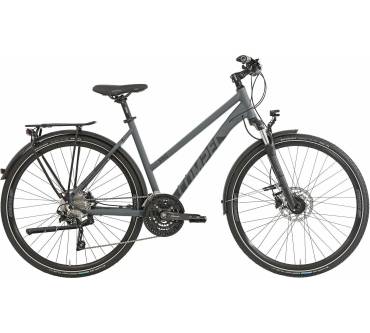Das Compel ist ein preislich attraktives Trekking-Bike mit einer 30-Gang-Schaltung des renommierten Herstellers Shimano. Auch an der Bereifung wurde mit dem Schwalbe Marathon Plus nicht gespart. Dieser zeichnet sich zwar durch einen guten Pannenschutz aus, hat jedoch den Nachteil, etwas zäh abzurollen. Aufgrund des großen Übersetzungsspektrums ist das Rad für viele Einsatzmöglichkeiten geeignet.