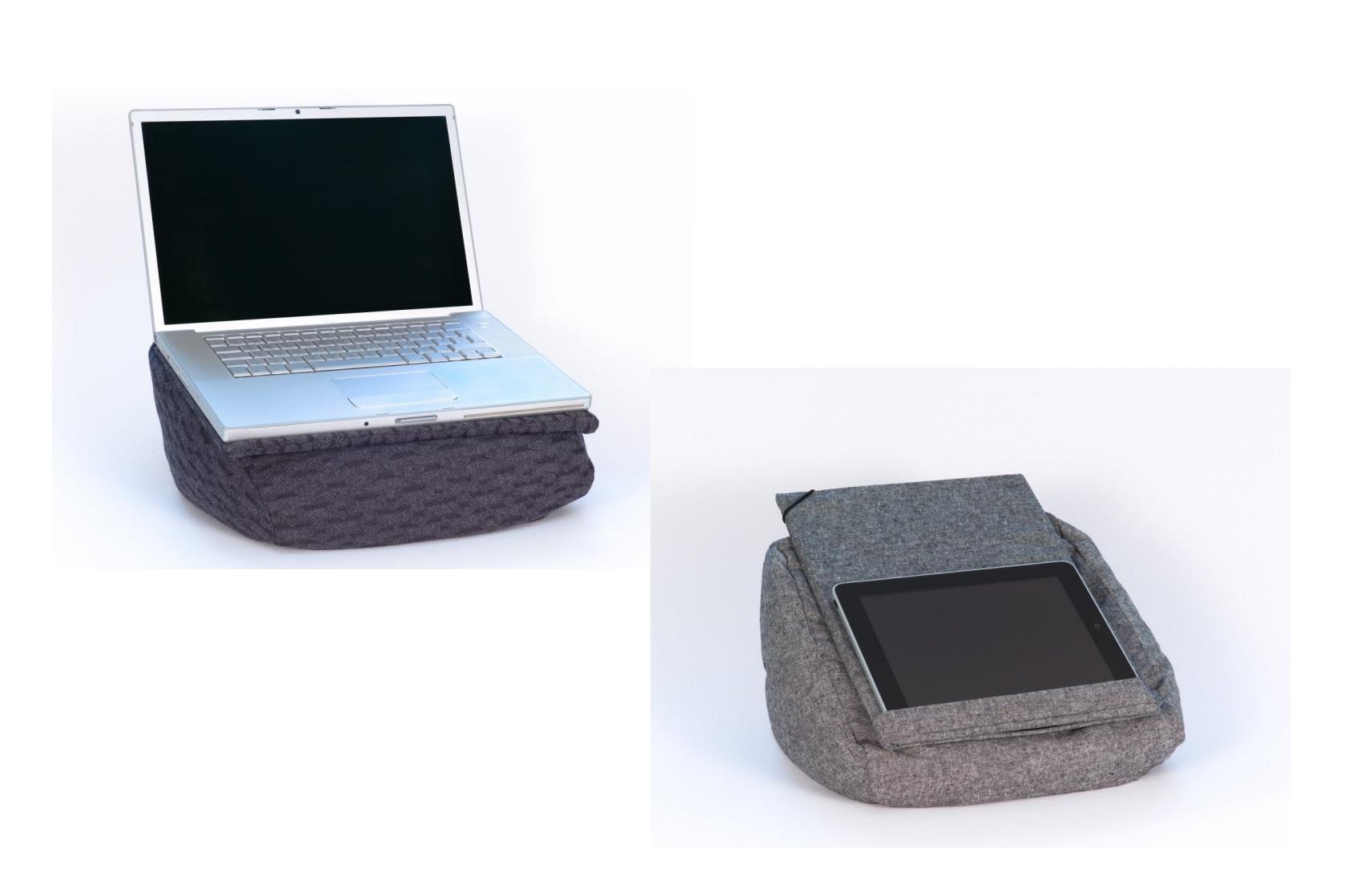 „Ein mit Styropor-Kugeln gefülltes Kissen mit einem festen Brett bilden die ideale Unterlage, um mit dem iPad auf dem Schoss auf der Couch zu sitzen - zum Spielen oder Lesen. Die Unterlage bleibt flexibel und bietet Bewegungsfreiheit, ohne zu stören. ...“
