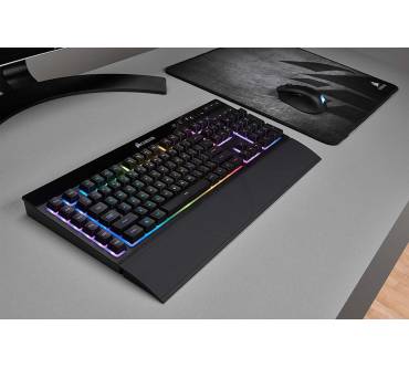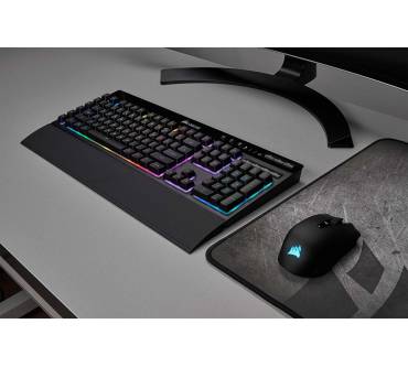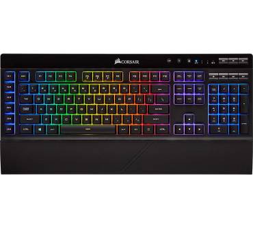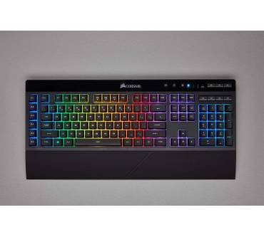 Die Corsair K57 RGB Wireless ist eine herkömmliche Membrantasten-Tastatur, die jedoch dank iCUE-Beleuchtung mit anderer Corsair-Peripherie synchronisiert werden kann – sofern diese ebenfalls über eine iCUE-RGB-Beleuchtung verfügt. Dann können Sie sehr flexibel diverse Muster, Farbverläufe sowie Helligkeitsstufen konfigurieren. Für eine Tastatur ohne mechanische Schalter ist der Preis von über 100 Euro bereits ziemlich hoch. Profi-Spieler dürften zudem die Genauigkeit und Schnelligkeit mechanischer Konkurrenten vermissen. Dafür punktet die K57 RGB Wireless mit Makrotasten und einer gelungenen Mediensteuerung. Die Akkulaufzeit ist prinzipiell sehr hoch, solange die RGB-Beleuchtung ausgeschaltet ist. Wenn diese aktiviert und zudem auf voller Helligkeit ist, dann rutscht die Laufzeit in den dürftigen Bereich. Immerhin können Sie die Tastatur zusätzlich am USB-Kabel betreiben.