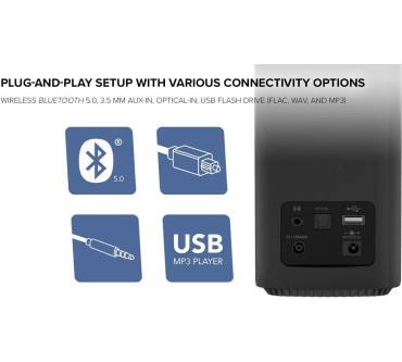 Für einen PC-Speaker der Budget-Klasse bietet der Creative T100 viel. Er sieht er gut aus, ist kompakt und besitzt zahlreiche Anschluss-Optionen - von Klinke über einen optischen Eingang bis hin zu USB und einem Bluetooth-Modul. Letzteres kommt allerdings nur mit dem Codec SBC zurecht, hier macht sich der geringe Preis bemerkbar. Zudem bemängelt das Portal "expertreviews.co.uk" die wahrnehmbaren Lags bei der Tonübertragung, etwa wenn man sich ein Video ansieht. Uneingeschränkt gut dafür: Der Sound macht Spaß. Er ist angenehm, die Basslinie klingt kräftig, Dialog-Passagen sind kommen sauber und sind gut verständlich. Im Zweifel lassen sich via Fernbedienung sogar Höhen und Tiefen anpassen. Fazit deshalb unterm Strich: Für den Preis ein gutes Paket.