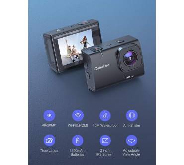 Zum Sichern der Videoaufnahmen in der hohen und dadurch speicherintensiven Auflösung 4K können bei der Crosstour CT9500 Speicherkarten mit einer Kapazität von 128 Gigabyte verwendet werden. Kunden berichten von Problemen bei der Nutzung solcher Karten. Diese können aber durch ein Formatieren über die entsprechende Funktion in der Kamera behoben werden. Neben der hohen Auflösung und der guten Bildqualität gefällt Kunden der große Lieferumfang, zu dem zwei Akkus und verschiedene Halterungen gehören. Um verschiedenen Motivsituationen gerecht zu werden, kann der Aufnahmewinkel des Objektivs zwischen 90 bis 170 Grad verstellt werden. Wie bei Action Cams üblich, sind auch mit der CT9500 Zeitraffer- und Serienaufnahmen möglich. Außerdem kann die Kamera dank des mitgelieferten Zusatzgehäuses bis zu einer Tiefe von 40 Metern unter Wasser verwendet werden.