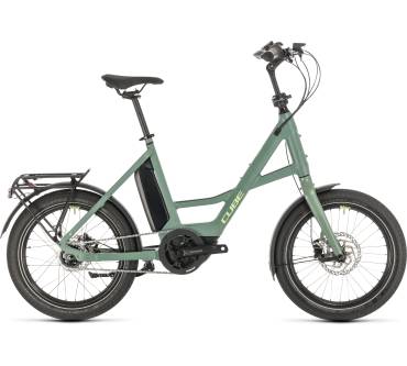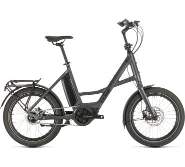 Amtlicher Antrieb, üppiger Akku, gedrungene Maße – das Compact Hybrid versteht sich als Erste-Klasse-Shuttle im Miniformat. Viele Kompromisse sind nicht einzugehen, denn die Ausstattung deckt sich bis auf die Starrgabel und die geringe Zahl der Gänge mit einem gut bestückten Trekkingrad. Auch im Detail lässt es viel Zuwendung erkennen: Der breite Lenker vermittelt Sicherheit bei Spurwechseln und kann – wie die Sattelstütze – ohne Werkzeug auf die richtige Höhe gebracht werden. Beim Verstauen im Wohnmobil oder Kombi lässt sich das Cube so auch schnell zurechtstutzen. Was das Maß in der Länge betrifft, so verschafft Ihnen der Kompaktflitzer nur einen geringfügigen Platzvorteil. Denn beim Radstand liegt es mit einem ausgewachsenen Rad gleichauf. Im Vergleich zu einem durchschnittlichen 28-Zoll-Trekkingrad sparen Sie bestenfalls etwas mehr als 20 cm ein.