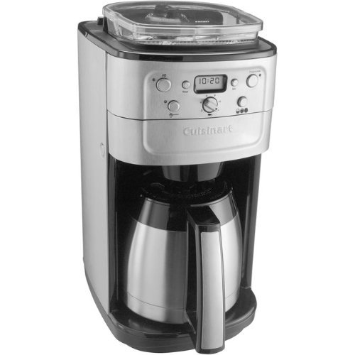 Kaffeemaschine mit integriertem Mahlwerk sind zwar noch nicht so häufig anzutreffen, für Kaffeegenießer jedoch sind sie eine feine und zugleich praktische Sache. Praktisch, weil kein weiteres separates Gerät in der Küche herumsteht oder verstaut werden muss, fein, weil der Duft frisch gemahlener Kaffeebohnen die Vorfreude erhöht und auch der Kaffee selbst, wie viele beschwören, einfach besser mundet. Bei der Cusinart kann ferner die Menge des benötigten Kaffeepulvers – gemessen anhand der Tassenzahl – eingestellt werden. Der Mahlgrad selbst jedoch lässt sich leider nicht variieren, jedenfalls legen dies das Datenblatt sowie die ersten Kundenmeinungen nahe. Außerdem ist ebenfalls nicht bekannt, um welche Art von Mahlwerk es sich handelt – für Kenner ist dies ein wichtiges Kriterium, da die Mühlentypen unterschiedlich gute Ergebnisse abliefern. Dafür verfügt die Cusinart über einen Timer, die Kaffeemaschine kann bis zu 24 Stunden im voraus programmiert werden, damit etwa frühmorgens in der Küche schon der fertig gebrühte Kaffee wartet. Ein weiteres Ausstattungsmerkmal der Cusinart ist ebenfalls eher selten beziehungsweise fast ausschließlich nur in hochwertigen Maschinen zu finden: Ein Filter befreit das Wasser von Kalk und Co, damit diese unerwünschten Inhaltsstoffe nicht das Aroma verfälschen. Ferner verzichte die Maschine auf eine Warmhalteplatte, stattdessen wird der Kaffee in einer Isolierkanne bis zu acht Stunden heiß gehalten. Die maximale Zubereitungsmenge schließlich beläuft sich auf 12 Tassen, also in etwa 1,8 Liter.