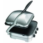 Aufgeklappt wiederum steht eine Grillfläche von zwei Mal 29 mal 23 Zentimetern zur Verfügung, um die sich zwei bis vier Personen scharen können – in der Kontaktgrillvariante eignet sich der Cusinart eher nur für einen Zwei-Personen-Haushalt. Die Grillplatten lassen sich wenden, wobei eine glatte sowie eine typisch gewellte „Grill“-Form zur Auswahl stehen, sowie leicht reinigen. Als Zubehör sind außerdem Waffelplatten lieferbar.