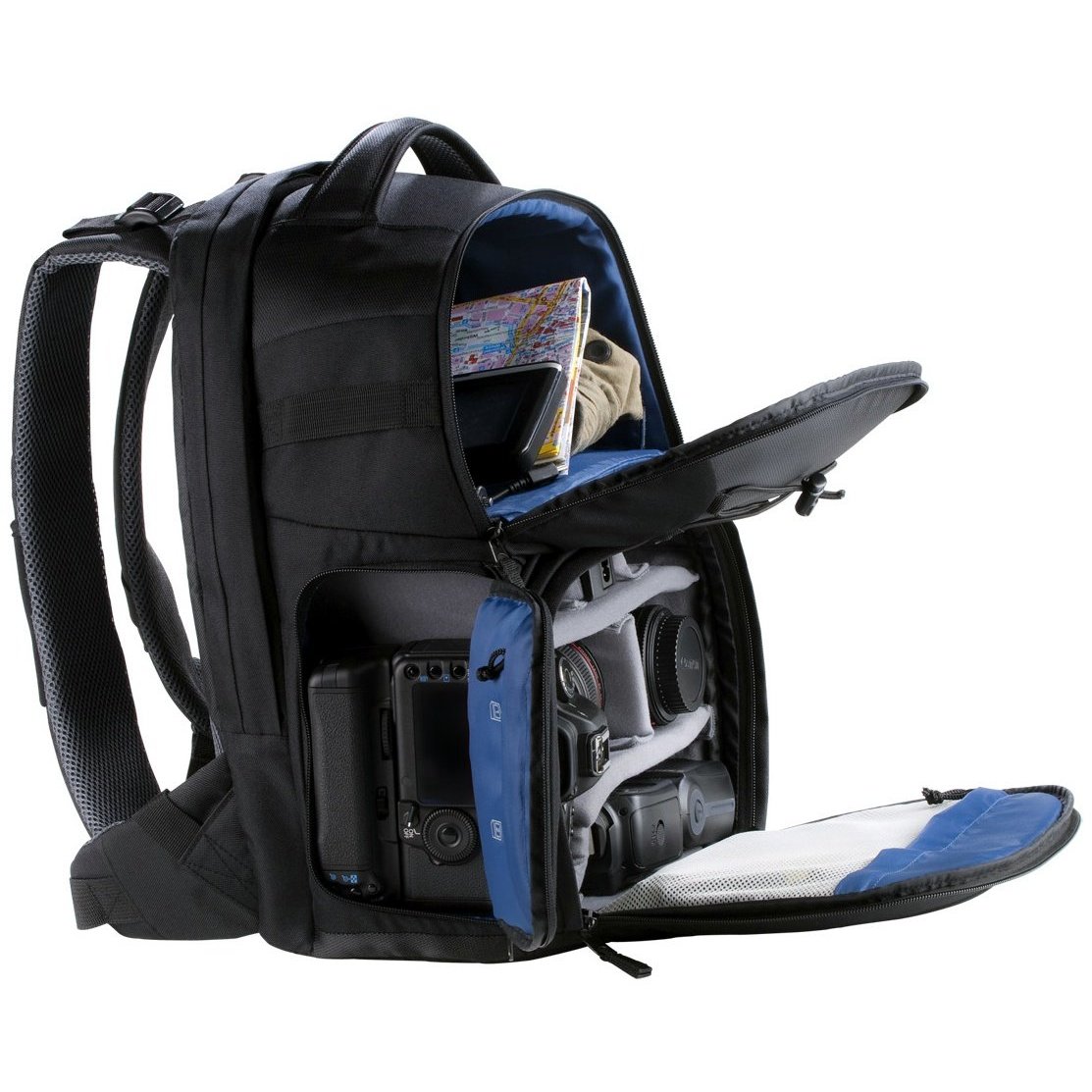 Die Maße dieses Fotorucksacks betragen 32 x 25 x 15 Zentimeter bei einem Gewicht von 1.400 Gramm. Die Mehrzahl der Nutzermeinungen heben die praktische Handhabbarkeit dieses Rucksacks hervor. Der Innenraum lässt sich durch ein herausnehmbares Trennelement in ein beziehungsweise zwei Fächer unterteilen, sodass man Reisegepäck und Kamera getrennt voneinander aufbewahren kann. Vor allem kleine bis mittelgroße Kameras sollen im Daypack Platz finden können. Spezielle integrierte Belüftungskanäle sollen für an angenehmes Klima am Rücken sorgen. Innen besteht der Rucksack aus einem weichen und abriebfesten Innenfutter, das bei Bedarf auch herausgenommen werden kann. Schulter, Brust- und Hüftgurte lassen sich individuell einstellen, weshalb sich der Rucksack auch für lange Touren eignen soll. Um schnell Zugang zum Inhalt zu erhalten wurde eine seitliche Öffnung angebracht, die über einen Reißverschluss zum Hauptfach verfügt. Zusätzlicher Stauraum bietet auch die vorne befindliche Tasche, in der man gut