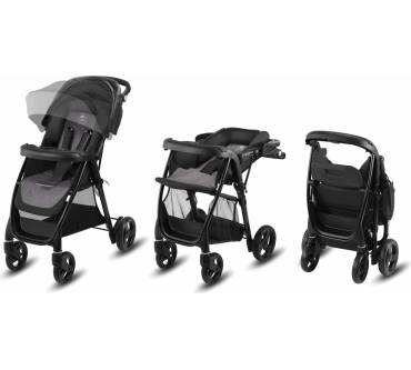 Beim Misu Air macht CBX, eine vom Bayreuther Unternehmen Cybex bemutterte Kinderwagenmarke, vieles anders. Das fällt sofort auf bei der Federung, Luftbereifung an der Hinterachse, der annähernd waagrechten Liegeposition und dem höhenverstellbaren Schiebegriff mit Knickgelenk. Mit Babyschale Shima, die man für rund 60 Euro allerdings separat erwerben muss, lässt sich der Buggy zu einem Travelsystem umrüsten und mit einem Neugeborenen für kurze Transportwege vom und zum Auto verwenden. Man traut CBX by Cybex vieles zu – vor allem, dass es den Kleinen auf Holperstrecken nicht das Rückenmark zerbröselt und auch größere Eltern den Wagen bequem schieben können. Viel einschneidender ist jedoch das Thema Sicherheit. So schließt die Transportsicherung im eingeklappten Zustand automatisch und eine Rotationssperre verhindert, dass sich die Schwenkräder auf unebenem Geläuf ihren Weg selbst suchen. Eine wendbare Sitzeinheit und der Länge nach verstellbare Fußstütze fehlen – beides wäre aber zu dem Preis wohl nicht machbar. In Relation zur Ausstattung sind die rund 160 Euro – stark reduzierte Angebote finden Sie teils bei Lidl – nicht viel Geld, dafür bekommt man eine der komfortabelsten Spaßraketen im Markt.