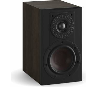 Hinter der abnehmbaren Front aus Kunststoffgeflecht kommen zwei Treiber zum Vorschein. Die Hochton-Gewebekalotte ist mit 29 mm etwas größer, was im Ergebnis „weniger Verzerrungen“, eine „höhere Belastbarkeit“ sowie einen „erweiterten Frequenzbereich nach unten“ mit sich bringt – so der Test. Darunter sitzt ein Tiefmitteltöner mit 120 mm Durchmesser, der nicht nur durch seine akustischen Fähigkeiten hervorsticht. Technisch und optisch interessant ist hier die spezielle, rotbraun gestaltete Membran, die aus Papier- und Holzfasern besteht und auf eine sehr elastische Gummisicke aufgebracht wurde. Unterstützung im Bass gibt’s durch das Bassreflex-Rohr auf der Rückseite, das ebenfalls durch sehr geringe Verzerrungen zu überzeugen weiß.