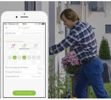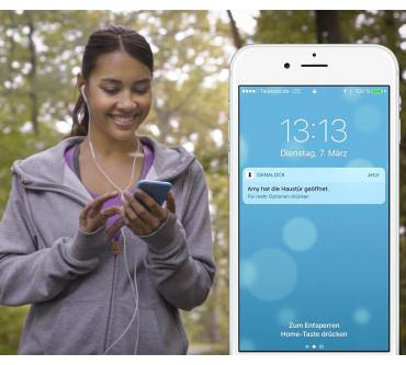 Die Türsicherung Smartlock V3 erlaubt das Öffnen der Tür per Handykontakt. Ist das Smartphone mit der entsprechenden App oder der sogenannte "Beacon" in direkter Türnähe, entriegelt sich das Schloss. Wer möchte, kann das Schloss zudem detailliert konfigurieren, sodass die Türsperre zum Beispiel für einige Sekunden aufgehoben wird, sodass man die Tür einfach aufstoßen kann. Außerdem kann man auch weitere berechtigte Personen hinzufügen, die das Schloss öffnen dürfen. Der Einbau ist gut dokumentiert und dank des variablen Zylinders funktioniert das System mit den meisten Türen. Ein Netzbetrieb ist nicht möglich, aber bei knappem Batteriefüllstand zeigt das Schloss ein deutliches LED-Signal.
