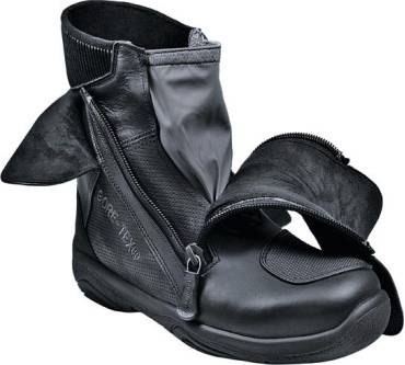Der Daytona Arrow Sport GTX ist ein sportlicher Kurzschaft-Motorradstiefel aus weichem, wasserabweisend gefettetem Rindleder. Dank der GORE-TEX® Duratherm-Membrane bleibt er wasserdicht und atmungsaktiv. Zwei seitliche Reißverschlüsse ermöglichen einen schnellen Einstieg. Sicherheitsmerkmale umfassen beidseitigen Knöchelschutz mit offenzelligem Spezialschaum, einen 3M-Scotchlite-Fersen-Reflektor und eine kunststoffverstärkte Innensohle mit feuerverzinkter Stahleinlage für Verwindungssteifigkeit bei gleichzeitigem Abrollkomfort. Die rutschfeste Gummisohle mit Sportprofil sorgt für guten Halt. Die Schafthöhe beträgt ca. 22 cm. Erhältlich in den Größen 36 bis 49 und in Schwarz.