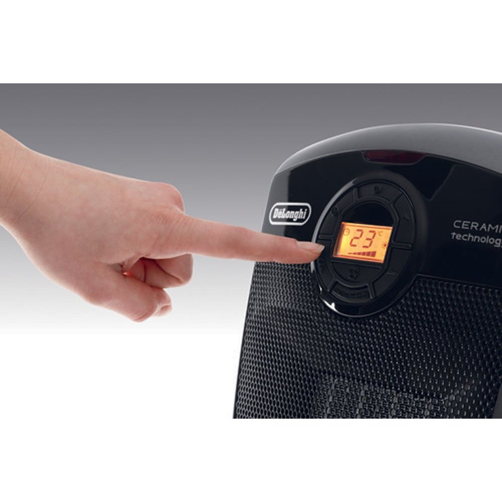 Der DCH 4590 ist einen Tick besser ausgestattet als viele unmittelbare Konkurrenten von ihm in seiner Klasse. So verfügt der von De Longhi vertriebene Heizlüfter über einen Umkippschutz, besitzt einen Timer und kann über ein LC-Display bedient werden – wobei im letzteren Punkt allerdings auch die Tücke des Objekts lauert.