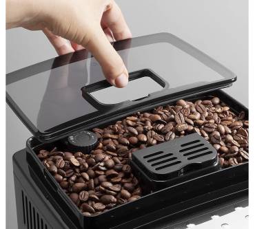 Der Kaffeevollautomat Magnifica S ECAM 20.116.B von De Longhi passt aufgrund seiner Kapazitäten gut in kleine bis mittelgroße Haushalte. Der Wassertank fasst 1,8 Liter, der Bohnenbehälter 250 Gramm. Positiv hervorzuheben ist der dafür voluminöse Tresterbehälter. Er bietet Platz für 14 Pelllets. Im Gerät steckt ein Kegelmahlwerk, das für eine schonende Zerkleinerung der Bohnen sorgt. So wird das Aroma bestmöglich bewahrt. Die Bauweise ist außerdem aufgrund ihres leisen Betriebs vorteilhaft. Zahlreiche Einstellmöglichkeiten erlauben es Ihnen, Ihren Kaffee nach Wunsch zuzubereiten. So stellen Sie den Mahlgrad in 13 ein. Auch die Stärke ist regelbar und in fünf Stufen voreingestellt. Für einen Preis von aktuell rund 300 Euro erhalten Sie eine ordentliche Leistung.