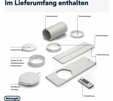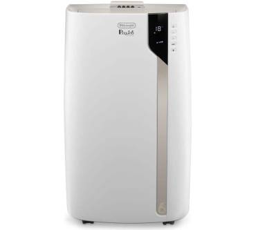 Das Klimagerät von De Longhi eignet sich zur Klimatisierung kleiner bis mittelgroßer Räume. Es wird in der unmittelbaren Nähe eines Fensters betrieben, damit die warme Abluft über den mitgelieferten Abluftschlauch ins Freie geleitet werden kann. Das Standgerät arbeitet auf drei Leistungsstufen. Den Geräuschpegel gibt der Hersteller mit maximal 60 Dezibel an, womit die De Longhi leiser als der Durchschnitt ihrer Produktkategorie ist. Beim Kältemittel setzt der Hersteller auf das ökologisch und gesundheitlich unbedenkliche Propan. Gesteuert wird die Anlage über ein Bedienfeld mit Temperaturanzeige oder die mitgelieferte Fernbedienung. Dafür, dass Sie die Fernbedienung immer griffbereit haben, sorgt das Ablagefach an der Geräteoberseite. Neben dem Kühleffekt hat das Klimagerät eine beachtliche Entfeuchtungsleistung von bis zu 60 Liter Wasser pro Tag zu bieten und belegt damit einen Spitzenplatz in seiner Produktkategorie. Das Umstellen innerhalb Ihrer Wohnung erleichtern Ihnen Griffmulden und Transportrollen.