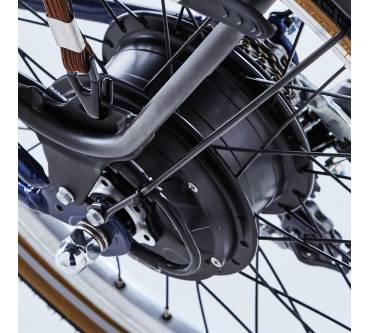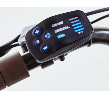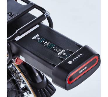 Gerade einmal 1.100 Euro ruft die aus Frankreich stammende französische Sportartikelkette für das B-Twin E-Fold 500 auf. Die Ausstattung ist entsprechend einfach gehalten, erfüllt jedoch durchaus ihren Zweck. Ein kleines Display zeigt den Akkustand an und dient der Betätigung der Lichtanlage. Der Radstand ist selbst für ein Faltrad recht kurz. In der Praxis bedeutet dies, dass das Vorderrad an Bodenkontakt verlieren kann, wenn Sie an Steigungen zu fest in die Pedale treten. Dies ist auch der Tatsache geschuldet, dass Akku und Motor am Heck sitzen.