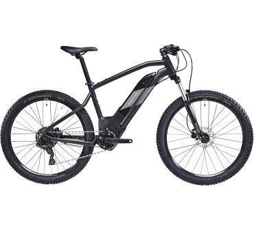 Das E-ST 500 von der Decathlon-Eigenmarke Rockrider ist ein E-Mountainbike mit Alurahmen. Vorne sorgt eine Federgabel mit 120 mm Federweg für das Dämpfen von Stößen beim Fahren über Stock und Stein. Die Laufräder mit 27,5 Zoll Durchmesser klettern leichter über Hindernisse als 26-Zoll-Pneus. Der Antrieb von Brose unterstützt Sie beim Fahren sowohl leise als auch harmonisch. Es mag dem günstigen Preis des Bikes geschuldet sein, dass die Akkukapazität nur 420 Wh beträgt. Aufgrund seiner Anbringung außen am Rahmen ist die Entnahme zum Aufladen kein Problem.