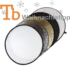 Das Delamax 5 in 1 Faltreflektoren Set kann für wenig Geld und Aufwand die Qualität von Foto- und Filmaufnahmen enorm verbessern. Es beinhaltet – wie der Name schon sagt – fünf verschiedene Reflektoren, die auf einen entsprechenden Rahmen aufgezogen werden. Ein weißer Reflektor kann beispielsweise die lästigen Schatten aus Gesichtern vertreiben. Ein goldener oder silberner Schirm leuchtet ein warmes oder kühles Licht noch in die dunkelste Ecke. Auch ein Diffusor gehört zum Set dazu. Er schafft Abhilfe bei zu starkem Licht, das durch ihn weich und flächig auf die Motive fällt.