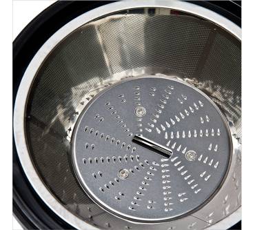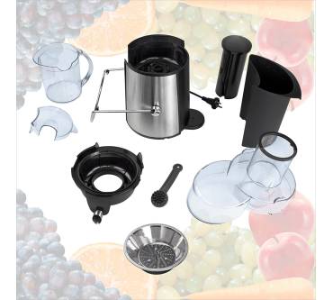 Mit dem Entsafter von Dema erhalten Sie für wenig Geld ein ordentliches Produkt, das Obst und Gemüse gründlich auspresst. Sie können das Gerät auch als Technikmuffel einfach bedienen. Der Saftbehälter hat mit 1 Liter ausreichend Volumen für mehrere Personen. Durch den großen Einfüllschacht arbeiten Sie bequem und zügig. Je nach Empfindlichkeit Ihres Pressgutes wählen Sie aus zwei Geschwindigkeitsstufen. Zentrifuge, Messerscheibe und Mikrosieb sind ebenso wie der Korpus aus robustem Edelstahl. Der Entsafter ist standfest und durch das 150 cm lange Kabel gut zu platzieren bzw. zu manövrieren. Es liegen erst wenige Nutzerbewertungen vor, die allerdings sehr positiv sind. In einem aktuellen Test wird aber die Lautstärke etwas bemängelt Dennoch erhält der Entsafter die Note „Gut“.