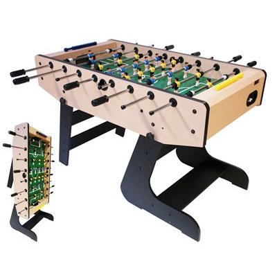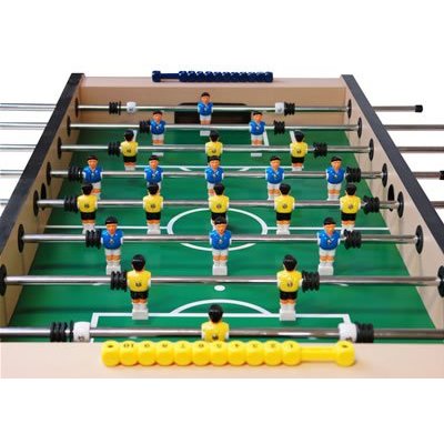 Wie bei vielen Tischkickern für den Hobby-/Freizeit-Bereich muss der Kunde auch den Folding Soccer in Eigenregie zusammenbauen – was viel Arbeit macht. Nach dem Spielen wiederum lässt sich der über Dema vertriebene Kicker mit ein paar Handgriffen zusammenfalten und somit platzsparend verstauen. In puncto Kickerqualität wiederum handelt es sich bei ihm um ein relativ robustes Gerät für Hobby-Spieler und/oder Kinder, das mit aktuell rund 230 EUR sogar erschwinglich ist.