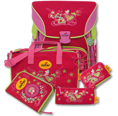 Beim XLight-Set handelt es sich um ein fünfteiliges Schulranzenset der Marke DerDieDas, die mit dem Modell „Fliegengewicht“ bereits die Stiftung Warentest mit einem „gut“ überzeugen konnte. Der Schulranzen X-Light bringt mit gerade mal 900 Gramm nur geringfügig mehr an Gewicht auf die Waage, kann dafür aber auch mit einem Gesamtvolumen von 21 Litern aufwarten und bietet mithin einen Liter mehr als das gut bewertete Modell.