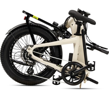 Beim Deruiz Peridot handelt es sich um ein platzsparendes Falt-Bike. Mit wenigen Handgriffen falten Sie das Rad an zwei Stellen zusammen, um es zu verstauen oder zu transportieren. Dank der dicken Profilreifen ist das Fahrrad auch für Geländefahrten ausgerüstet. Die dicken Reifen tragen, genau wie die Federgabel, zu einer bequemen Federung auf Unebenheiten bei. Leider verfügt dieses Modell nicht über einen Drehmomentsensor, sondern lediglich über einen Pedalsensor. Das ist okay, wenn einfach nur Power hersoll. Natürlich fühlt sich das nicht an. Der Gepäckträger ist, wie der Rahmen, aus robustem Material gefertigt. Er bietet eine Tragkraft von 50 Kilogramm und lässt sich mit verschiedenem Zubehör ausstatten. Nicht zuletzt ist hier das gute Preis-Leistungs-Verhältnis zu nennen, welches das Bike zu einer spannenden Option für ein kleineres Budget macht.