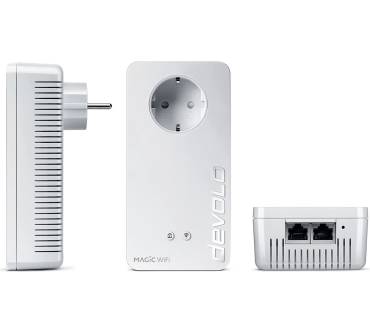 Zusätzlich zum Magic 2 WiFi 6 Starter Kit bringt Devolo auch ein Multiroom-Kit heraus, das mit einem zusätzlichen Adapter auch große Häuser oder Grundstücke mit stabilen Wi-Fi-6-Netz abdecken kann. Der Aufpreis fällt mit über 100 Euro ziemlich hoch aus, sodass es kaum einen Unterschied machen, ob Sie einen Einzeladapter zum Starter Kit hinzukaufen oder gleich zum Multiroom-Kit greifen. Auf der Habenseite verbucht das Kit ein referenzverdächtiges WLAN-Tempo sowie Steckdosen-Durchführungen sowohl am Basis-Adapter als auch an den Satelliten. Wenn Sie noch ältere Powerline-Adapter mit dem Homeplug-AV-Standard haben, können Sie diese wegen des neuen Standards nicht mit den Devolos zusammen nutzen. Der Stromverbrauch der Wi-Fi-6-Adapter fällt etwas höher aus als man es von der Wi-Fi-5-Generation kennt.